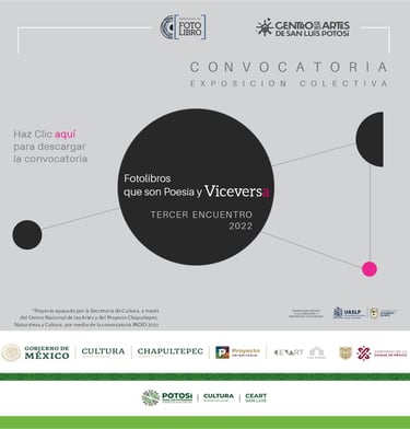 Todo tipo de proyecto de comunicación es posible por la experiencia de nuestro equipo de diseñadores así se logró la realización de concepto y diseño de la comunicación visual y gráfica de un maravilloso proyecto de la artista mexicana Celeste Alba Iris: Mirada al [Fotolibro] Tercer Encuentro Internacional FotoLibros que son Poesía y Viceversa 2022, que se desarrolló en el Centro de las artes de San Luis Potosí y bajo el auspicio del programa PADID de la Secretaria de Cultura de México. Honrado y agradecido por la confianza.